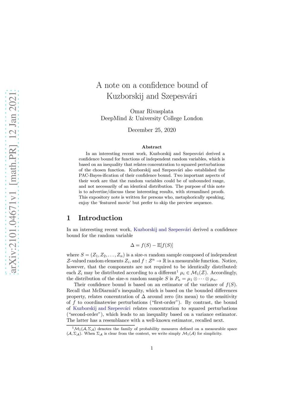 A note on a confidence bound of Kuzborskij and Szepesvári