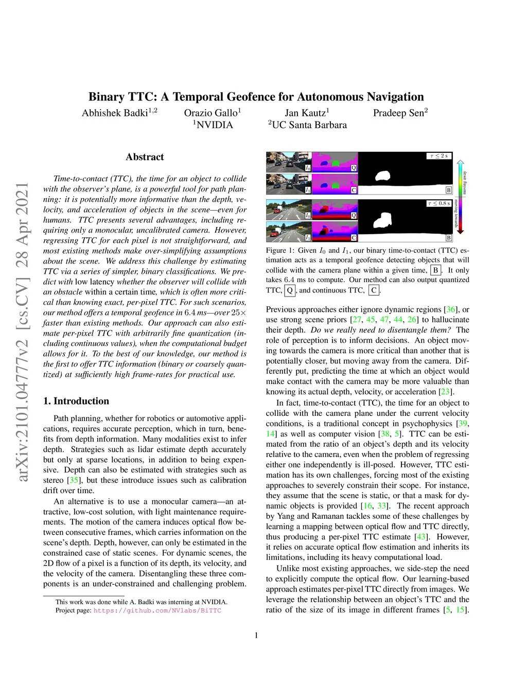 Binary TTC: A Temporal Geofence for Autonomous Navigation