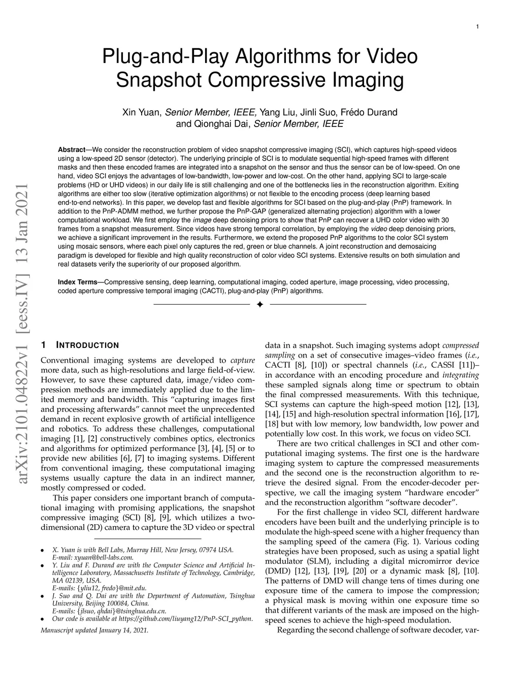 Plug-and-Play Algorithms for Video Snapshot Compressive Imaging