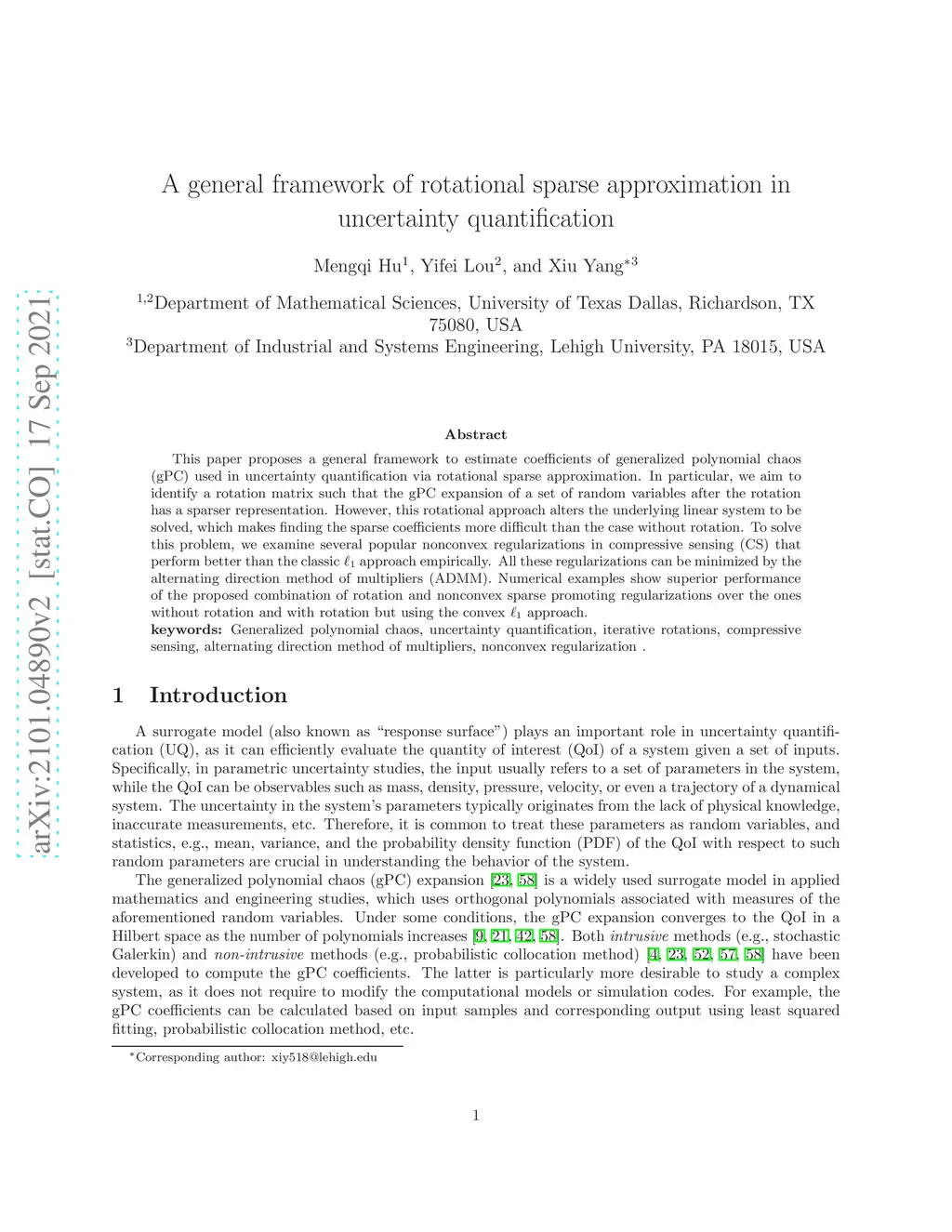 A general framework of rotational sparse approximation in uncertainty