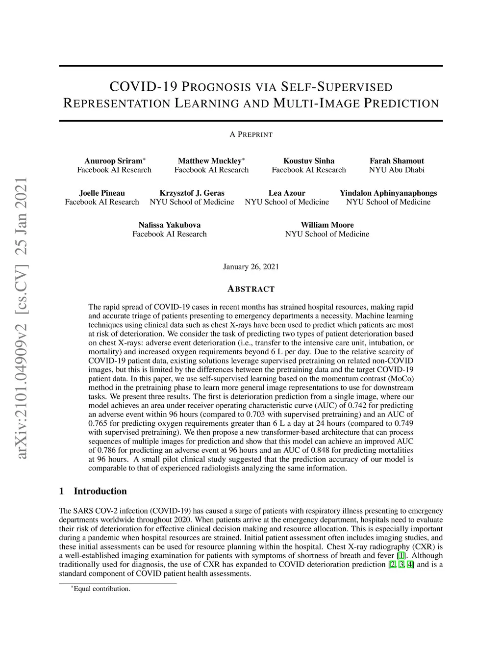 COVID-19 Prognosis via Self-Supervised Representation Learning and