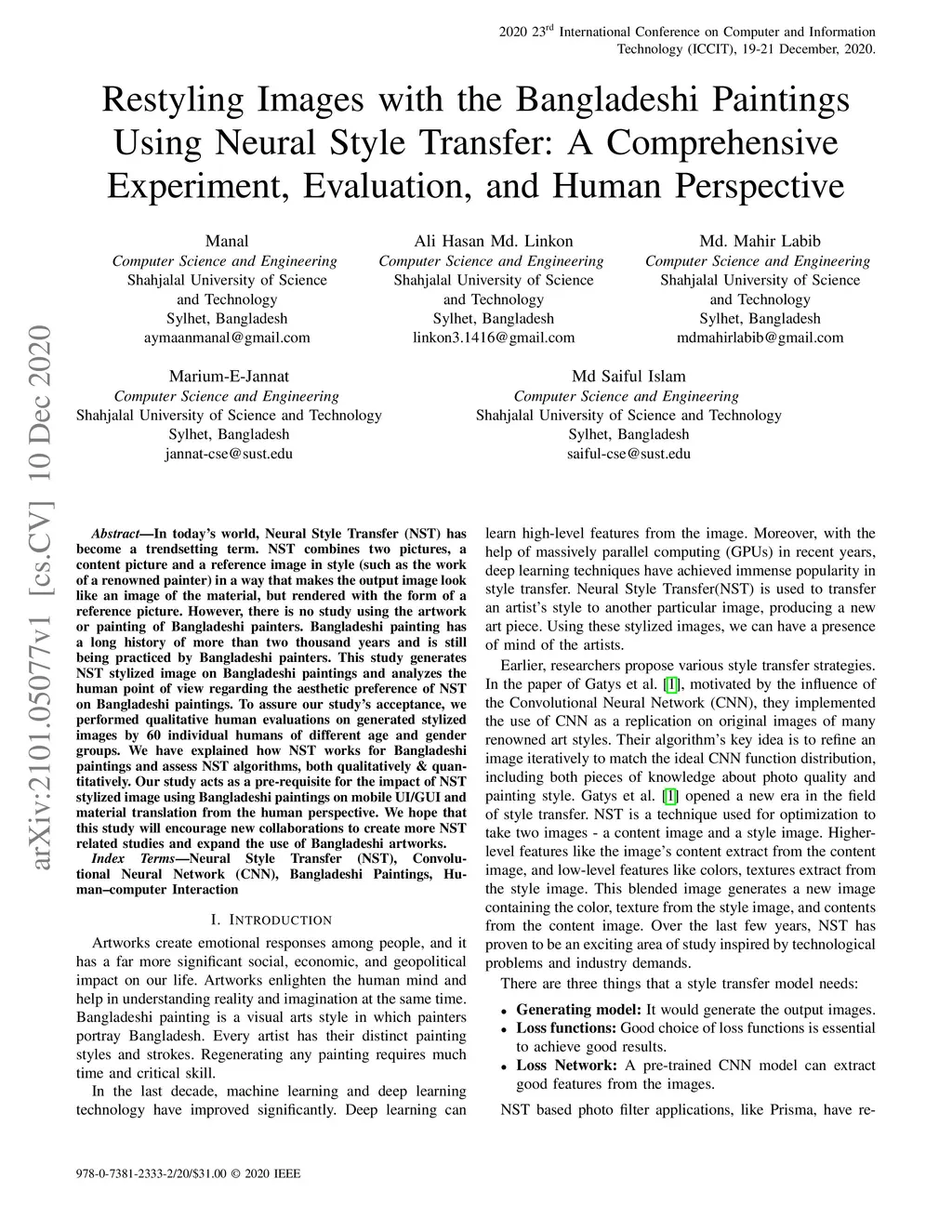 Restyling Images with the Bangladeshi Paintings Using Neural Style