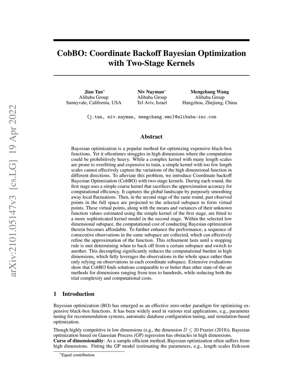 CobBO: Coordinate Backoff Bayesian Optimization with Two-Stage Kernels