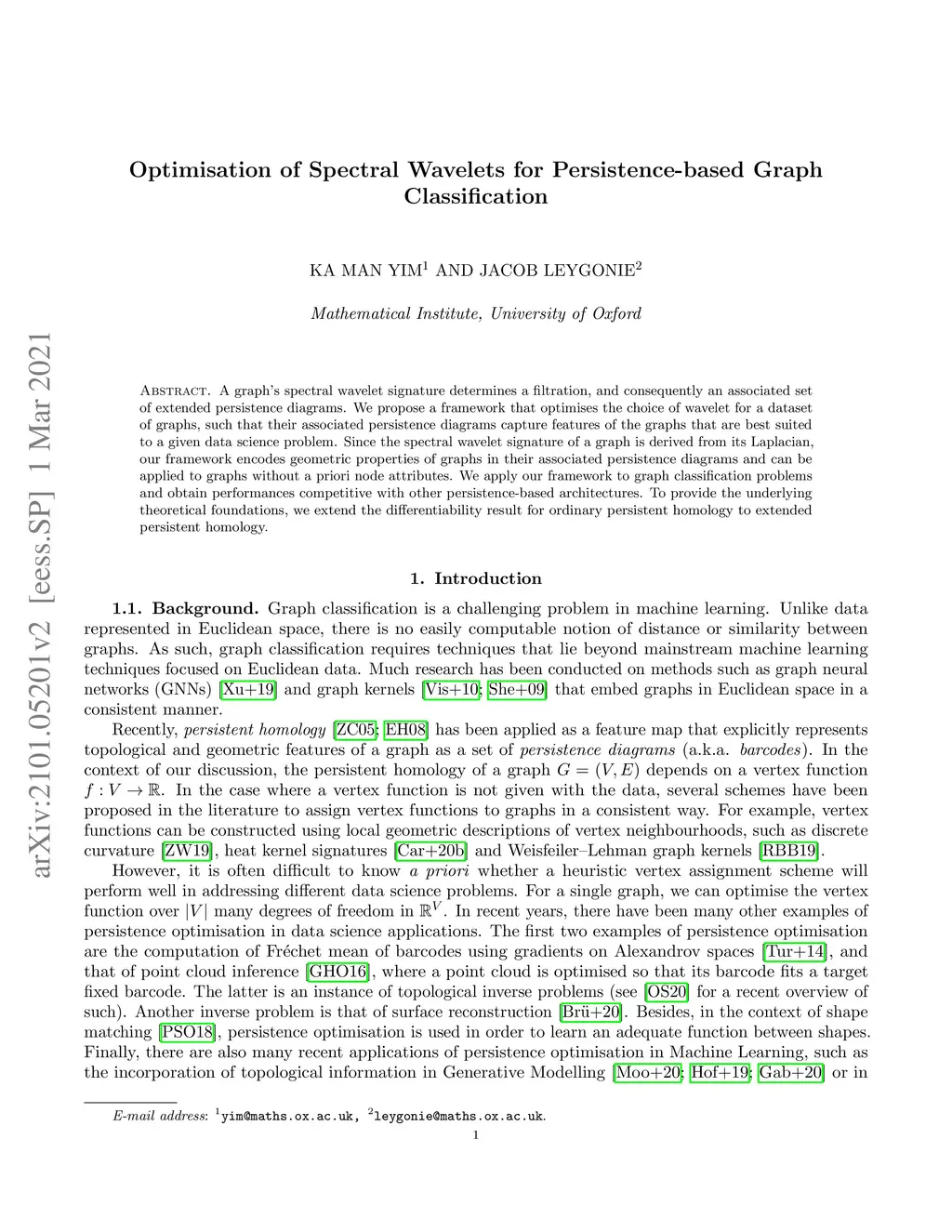 Optimisation of Spectral Wavelets for Persistence-based Graph