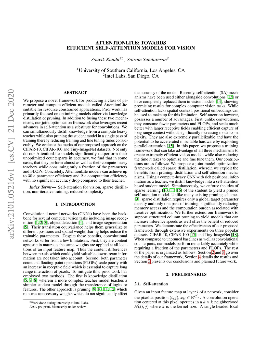 AttentionLite: Towards Efficient Self-Attention Models for Vision