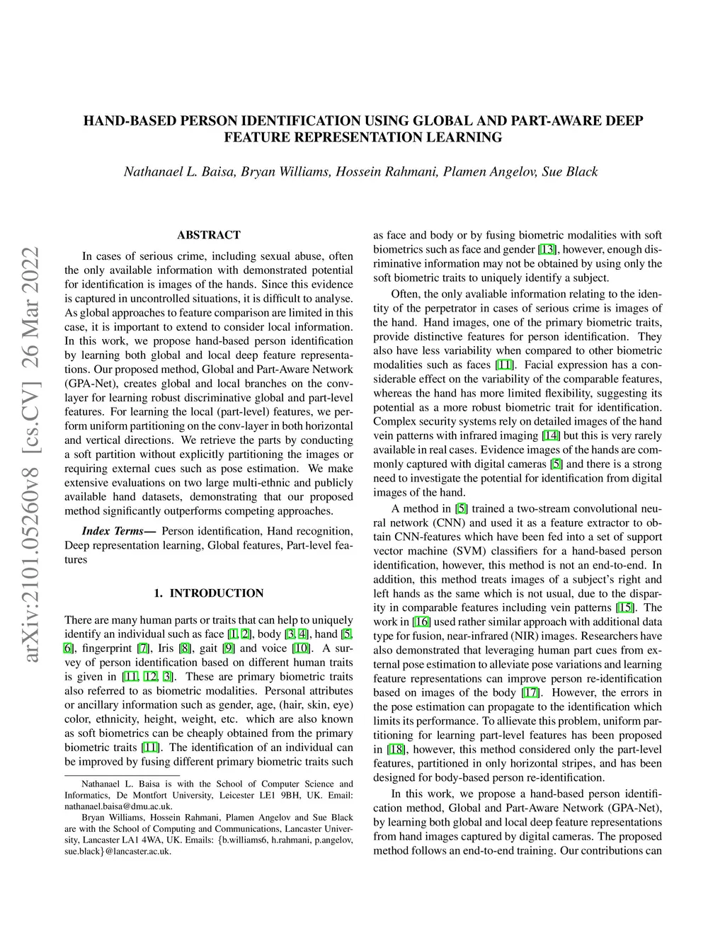 Hand-Based Person Identification using Global and Part-Aware Deep