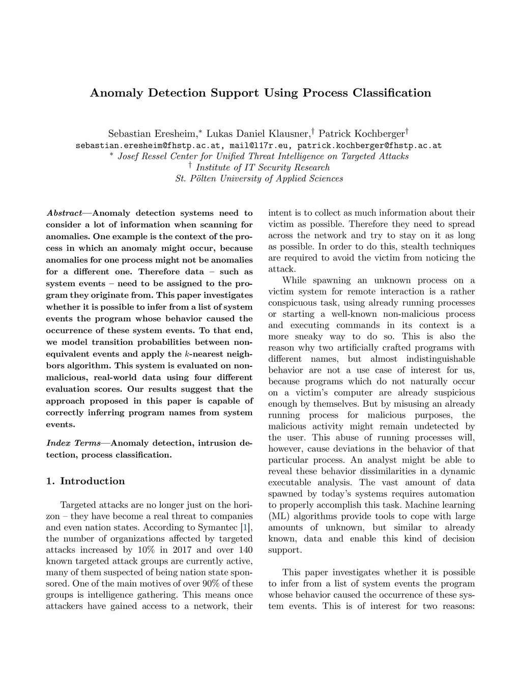 Anomaly detection systems need to consider a lot of information when scanning for anomalies. One example is the context of the process in which an anomaly might occur, because anomalies for one process might not be anomalies for a different one. Therefore data -- such as system events -- need to be assigned to the program they originate from. This paper investigates whether it is possible to infer from a list of system events the program whose behavior caused the occurrence of these system events. To that end, we model transition probabilities between non-equivalent events and apply the -nearest neighbors algorithm. This system is evaluated on non-malicious, real-world data using four different evaluation scores. Our results suggest that the approach proposed in this paper is capable of correctly inferring program names from system events.