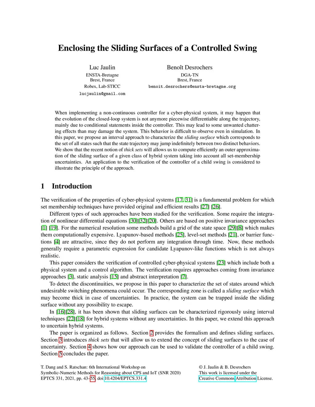 Enclosing the Sliding Surfaces of a Controlled Swing
