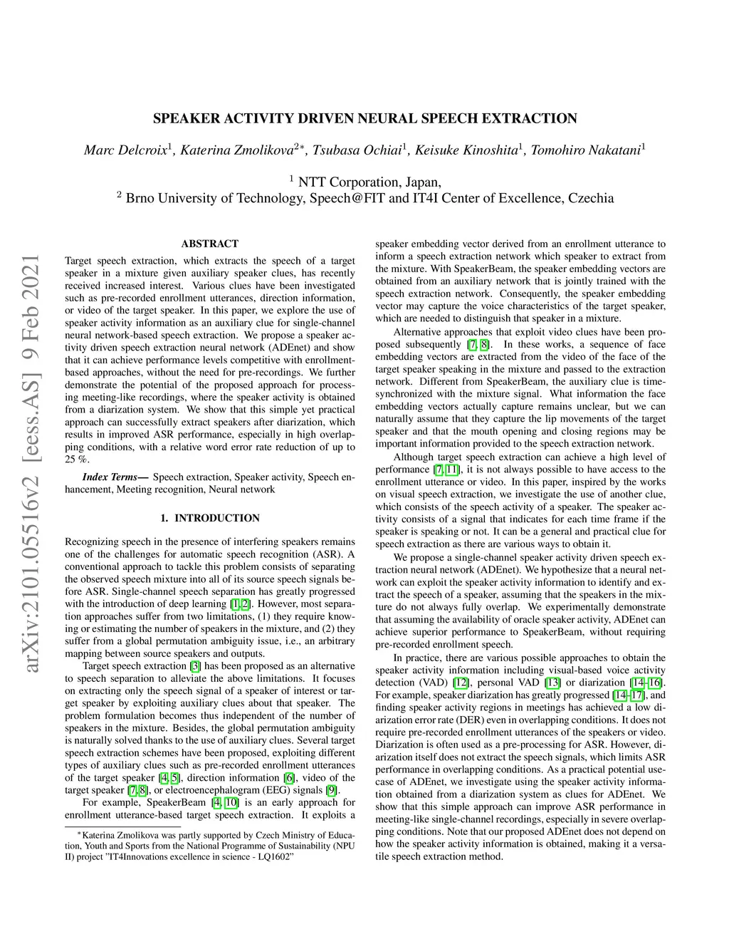 Target speech extraction, which extracts the speech of a target speaker in a mixture given auxiliary speaker clues, has recently received increased interest. Various clues have been investigated such as pre-recorded enrollment utterances, direction information, or video of the target speaker. In this paper, we explore the use of speaker activity information as an auxiliary clue for single-channel neural network-based speech extraction. We propose a speaker activity driven speech extraction neural network (ADEnet) and show that it can achieve performance levels competitive with enrollment-based approaches, without the need for pre-recordings. We further demonstrate the potential of the proposed approach for processing meeting-like recordings, where the speaker activity is obtained from a diarization system. We show that this simple yet practical approach can successfully extract speakers after diarization, which results in improved ASR performance, especially in high overlapping conditions, with a relative word error rate reduction of up to 25%.
