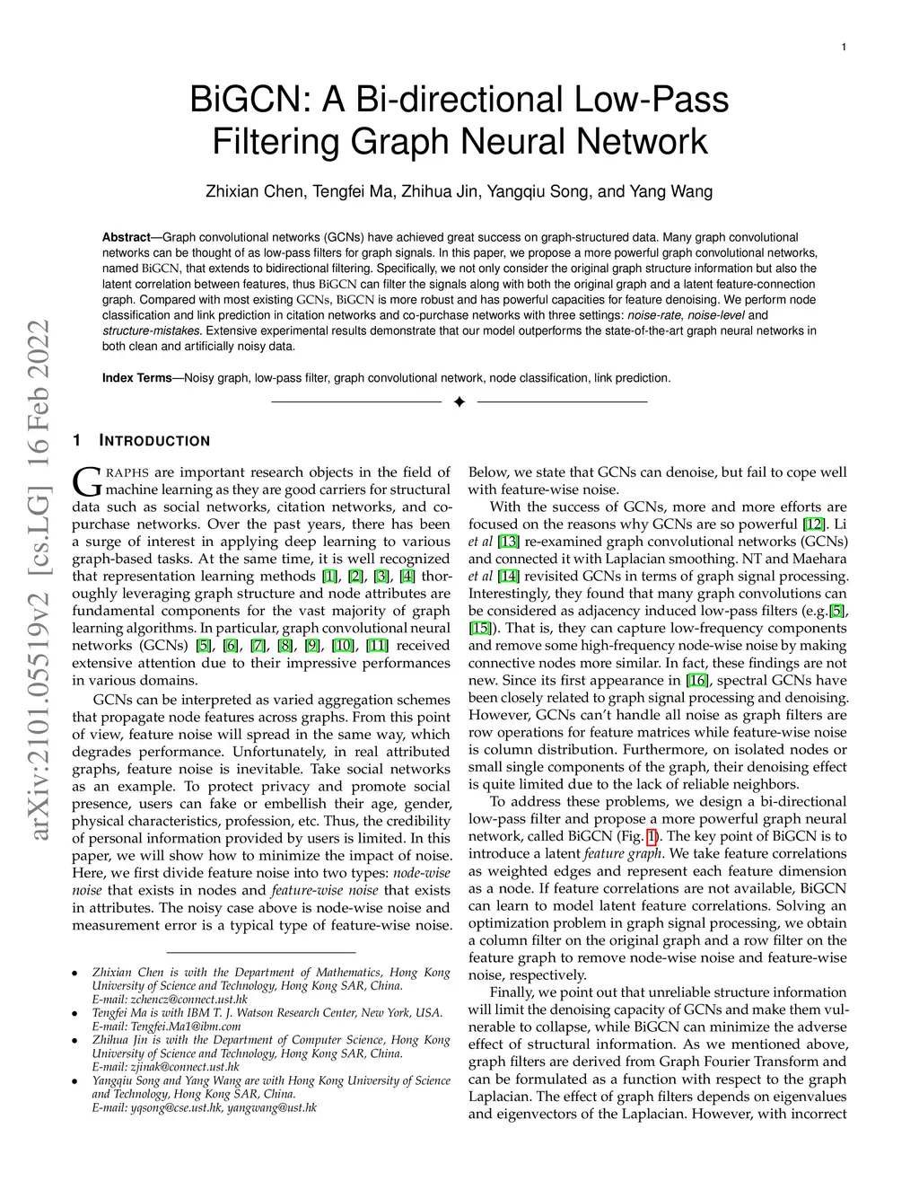 BiGCN: A Bi-directional Low-Pass Filtering Graph Neural Network