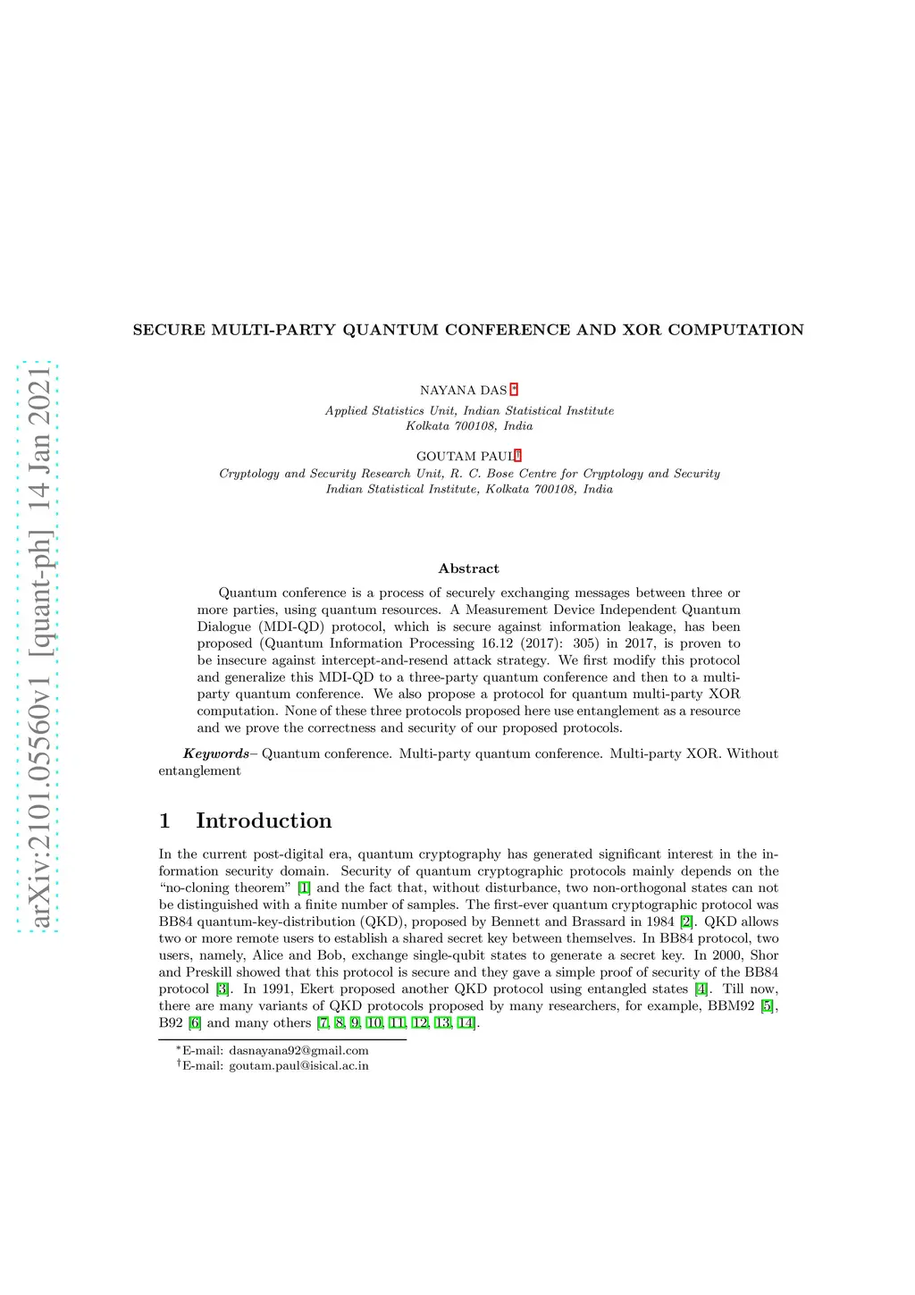 Secure Multi-Party Quantum Conference and Xor Computation