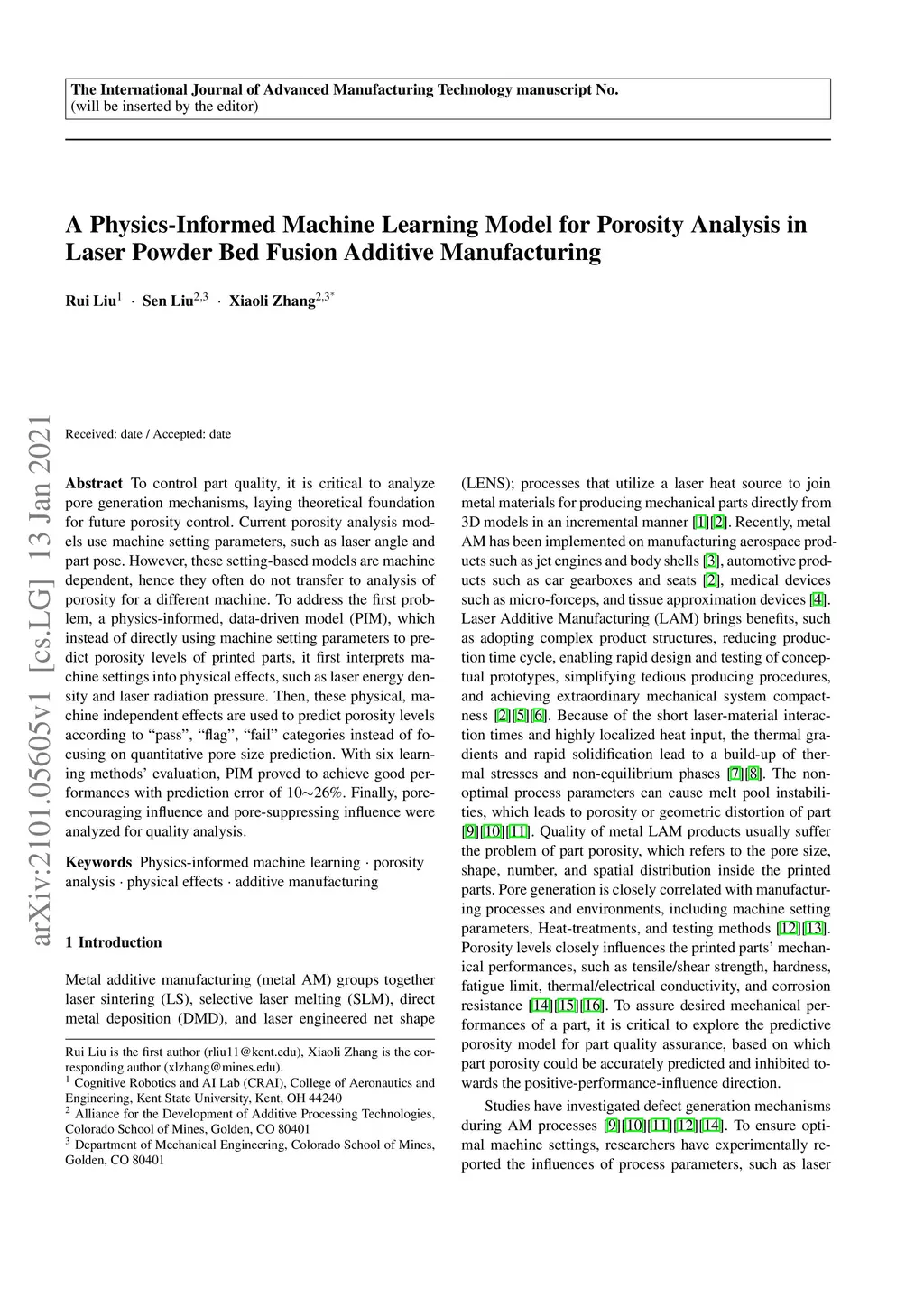 A Physics-Informed Machine Learning Model for Porosity Analysis in Laser