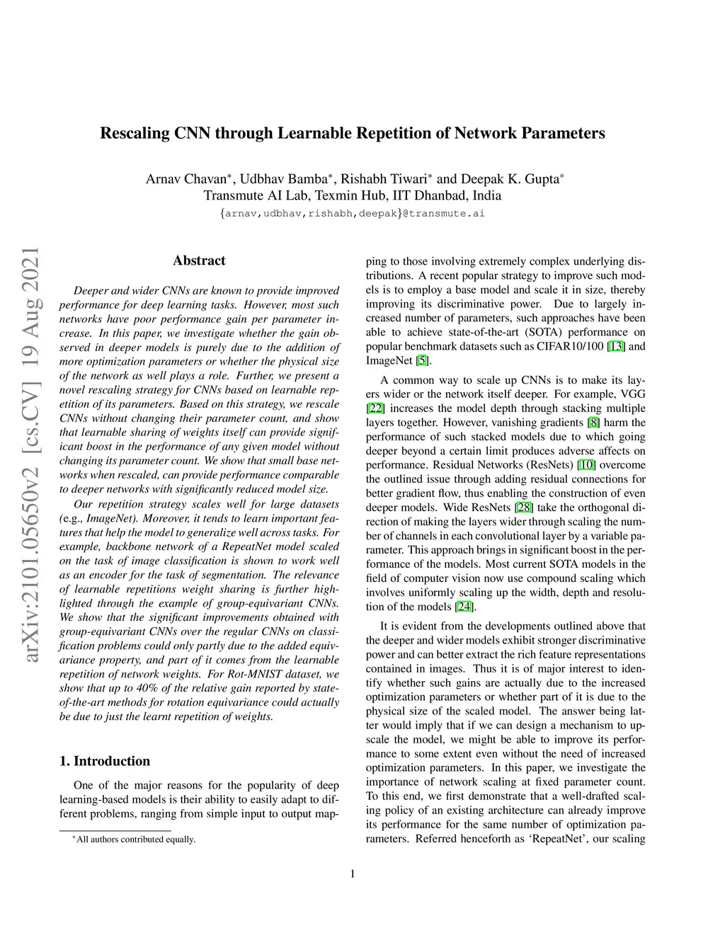Rescaling CNN through Learnable Repetition of Network Parameters