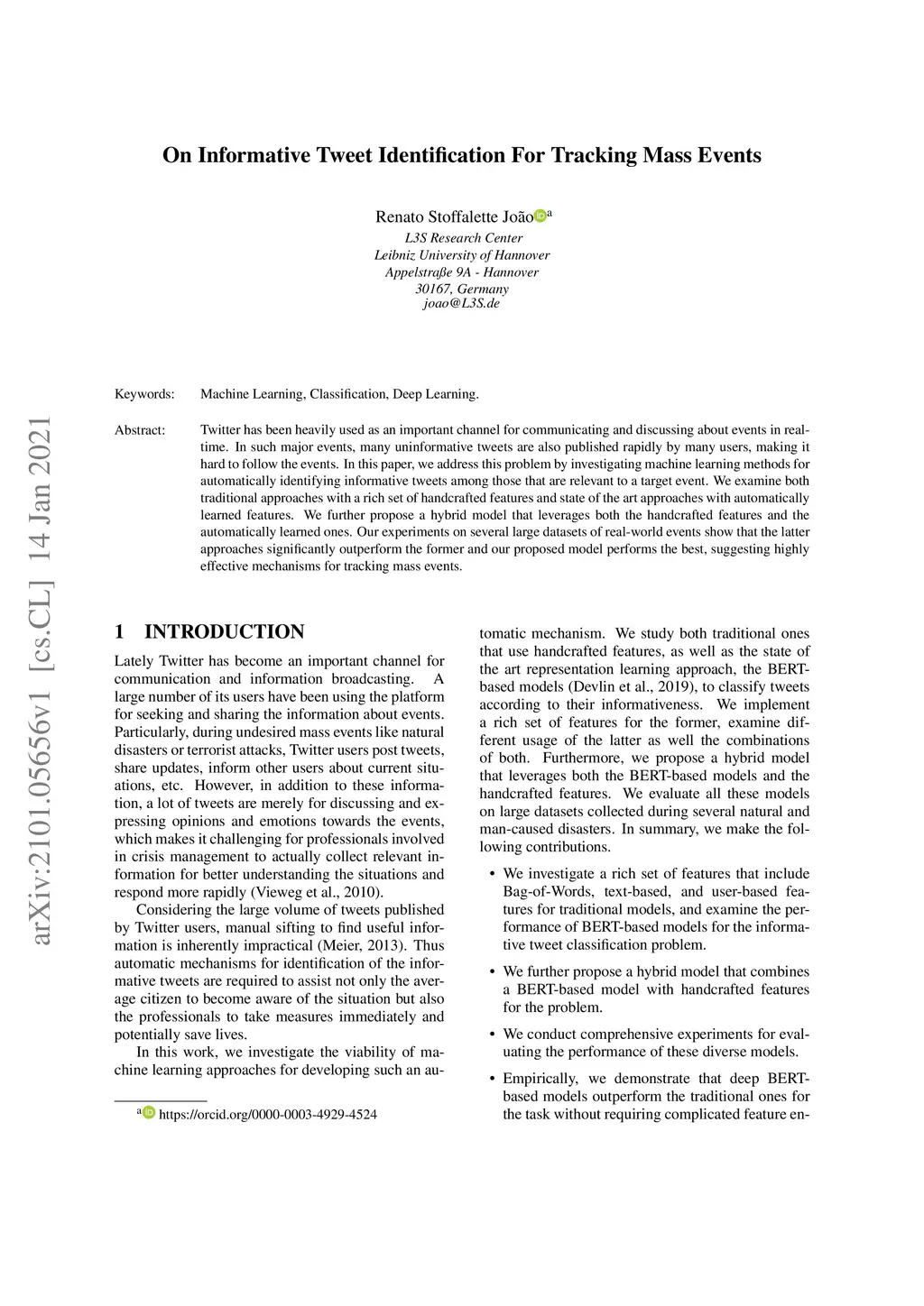 Twitter has been heavily used as an important channel for communicating and discussing about events in real-time. In such major events, many uninformative tweets are also published rapidly by many users, making it hard to follow the events. In this paper, we address this problem by investigating machine learning methods for automatically identifying informative tweets among those that are relevant to a target event. We examine both traditional approaches with a rich set of handcrafted features and state of the art approaches with automatically learned features. We further propose a hybrid model that leverages both the handcrafted features and the automatically learned ones. Our experiments on several large datasets of real-world events show that the latter approaches significantly outperform the former and our proposed model performs the best, suggesting highly effective mechanisms for tracking mass events.