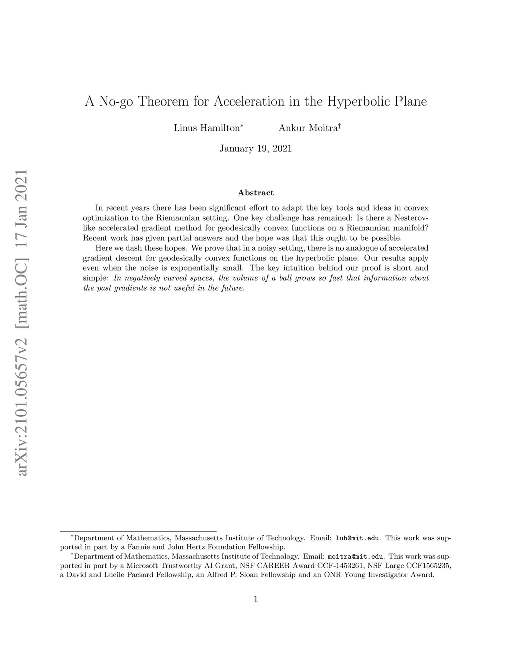 No-go Theorem for Acceleration in the Hyperbolic Plane