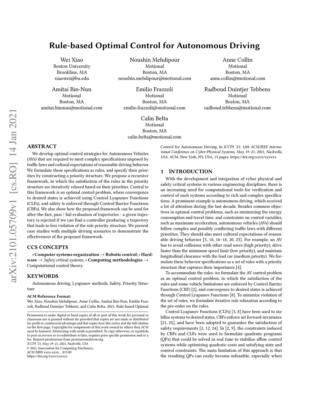 We develop optimal control strategies for Autonomous Vehicles (AVs) that are required to meet complex specifications imposed by traffic laws and cultural expectations of reasonable driving behavior. We formulate these specifications as rules, and specify their priorities by constructing a priority structure. We propose a recursive framework, in which the satisfaction of the rules in the priority structure are iteratively relaxed based on their priorities. Central to this framework is an optimal control problem, where convergence to desired states is achieved using Control Lyapunov Functions (CLFs), and safety is enforced through Control Barrier Functions (CBFs). We also show how the proposed framework can be used for after-the-fact, pass / fail evaluation of trajectories - a given trajectory is rejected if we can find a controller producing a trajectory that leads to less violation of the rule priority structure. We present case studies with multiple driving scenarios to demonstrate the effectiveness of the proposed framework.