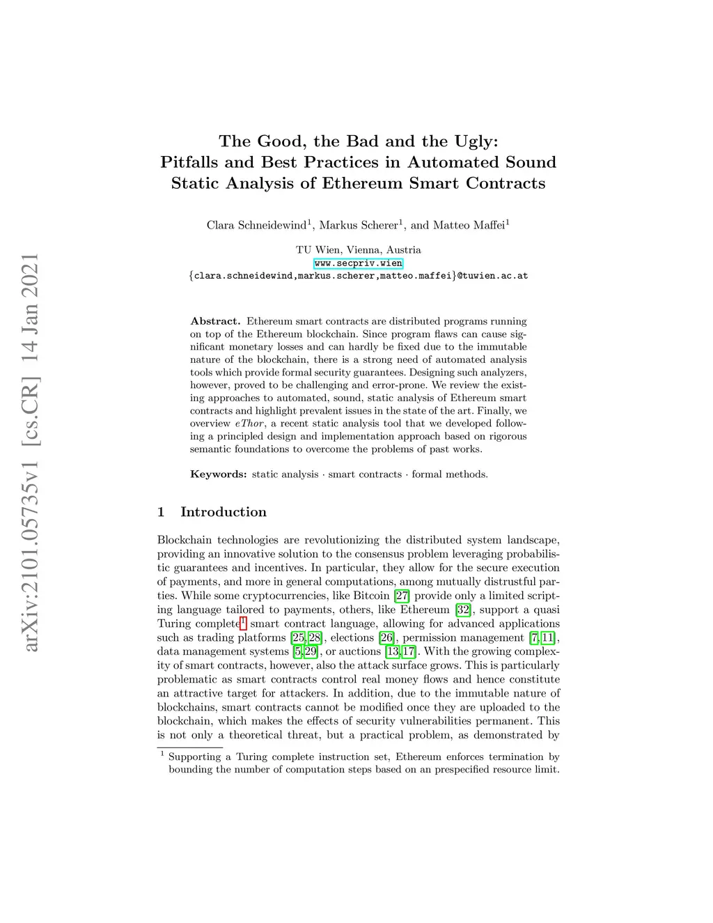 Sound Static Analysis of Ethereum Smart Contracts