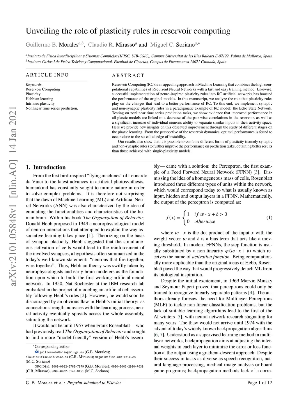 Unveiling the role of plasticity rules in reservoir computing
