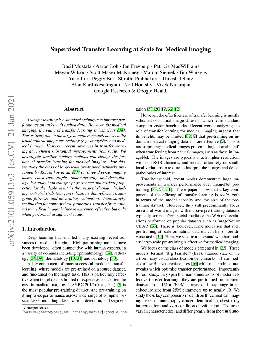 Supervised Transfer Learning at Scale for Medical Imaging