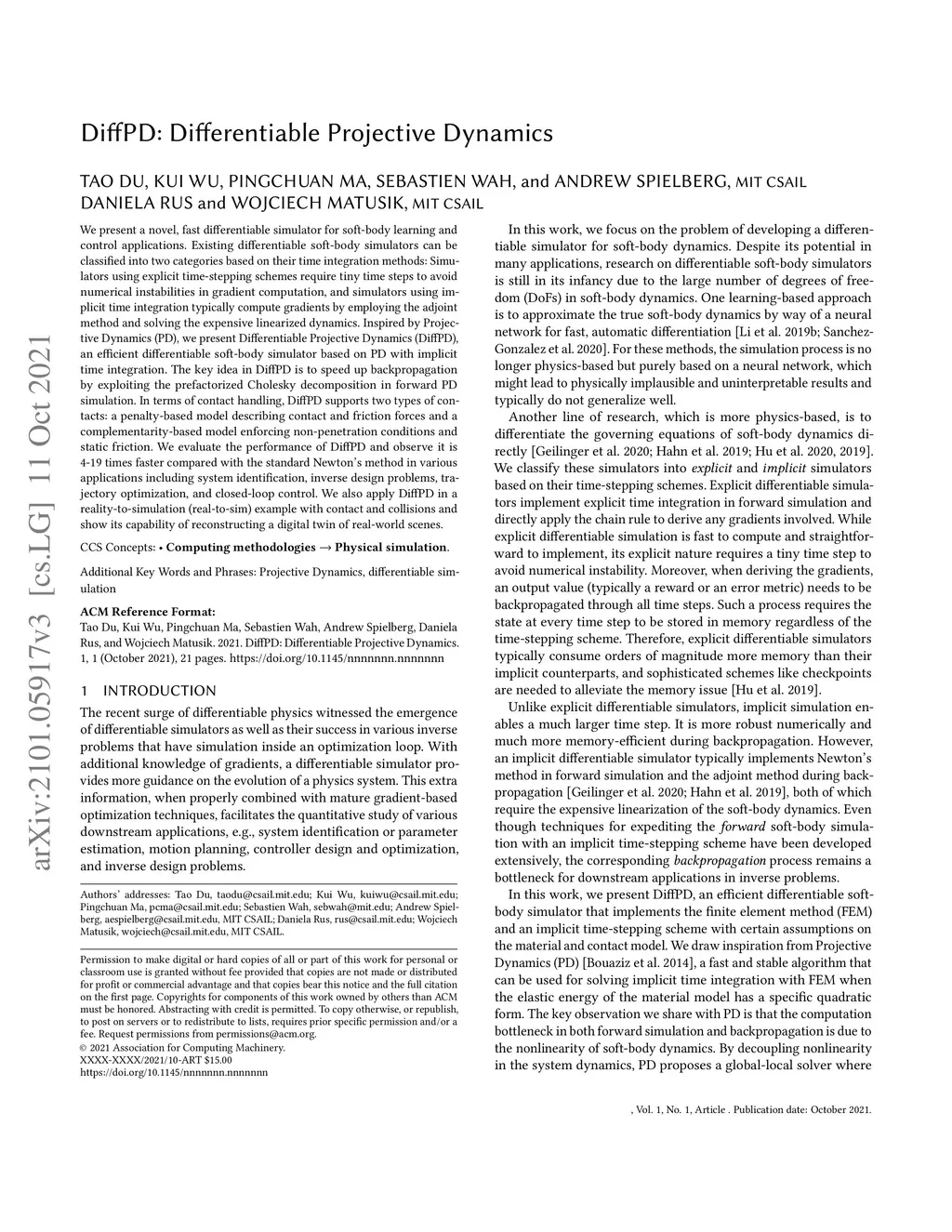 DiffPD: Differentiable Projective Dynamics