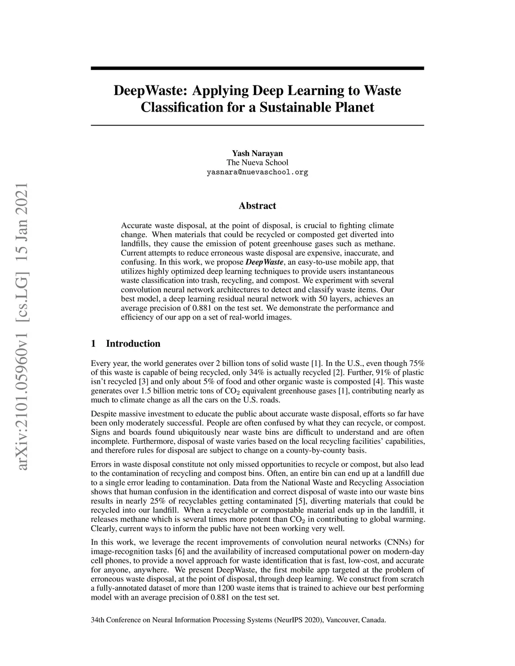 DeepWaste: Applying Deep Learning to Waste Classification for a