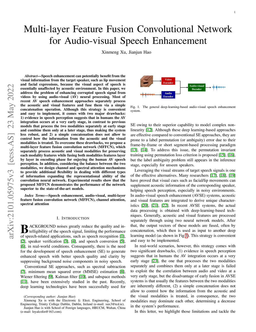 Multi-layer Feature Fusion Convolution Network for Audio-visual Speech
