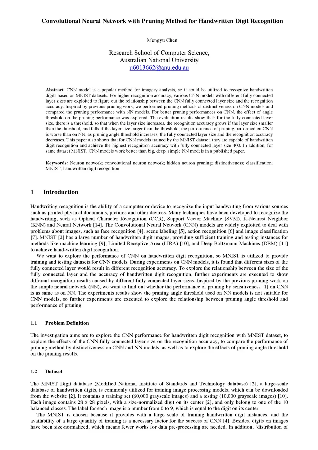 Convolutional Neural Network with Pruning Method for Handwritten Digit