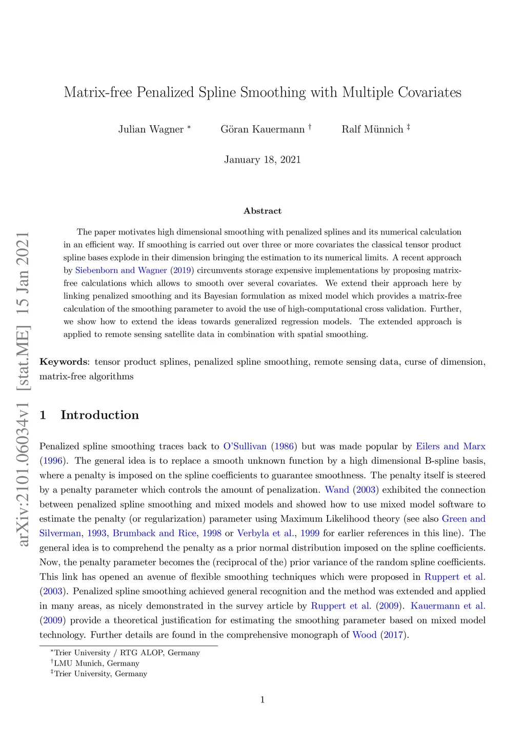 The paper motivates high dimensional smoothing with penalized splines and its numerical calculation in an efficient way. If smoothing is carried out over three or more covariates the classical tensor product spline bases explode in their dimension bringing the estimation to its numerical limits. A recent approach by Siebenborn and Wagner(2019) circumvents storage expensive implementations by proposing matrix-free calculations which allows to smooth over several covariates. We extend their approach here by linking penalized smoothing and its Bayesian formulation as mixed model which provides a matrix-free calculation of the smoothing parameter to avoid the use of high-computational cross validation. Further, we show how to extend the ideas towards generalized regression models. The extended approach is applied to remote sensing satellite data in combination with spatial smoothing.