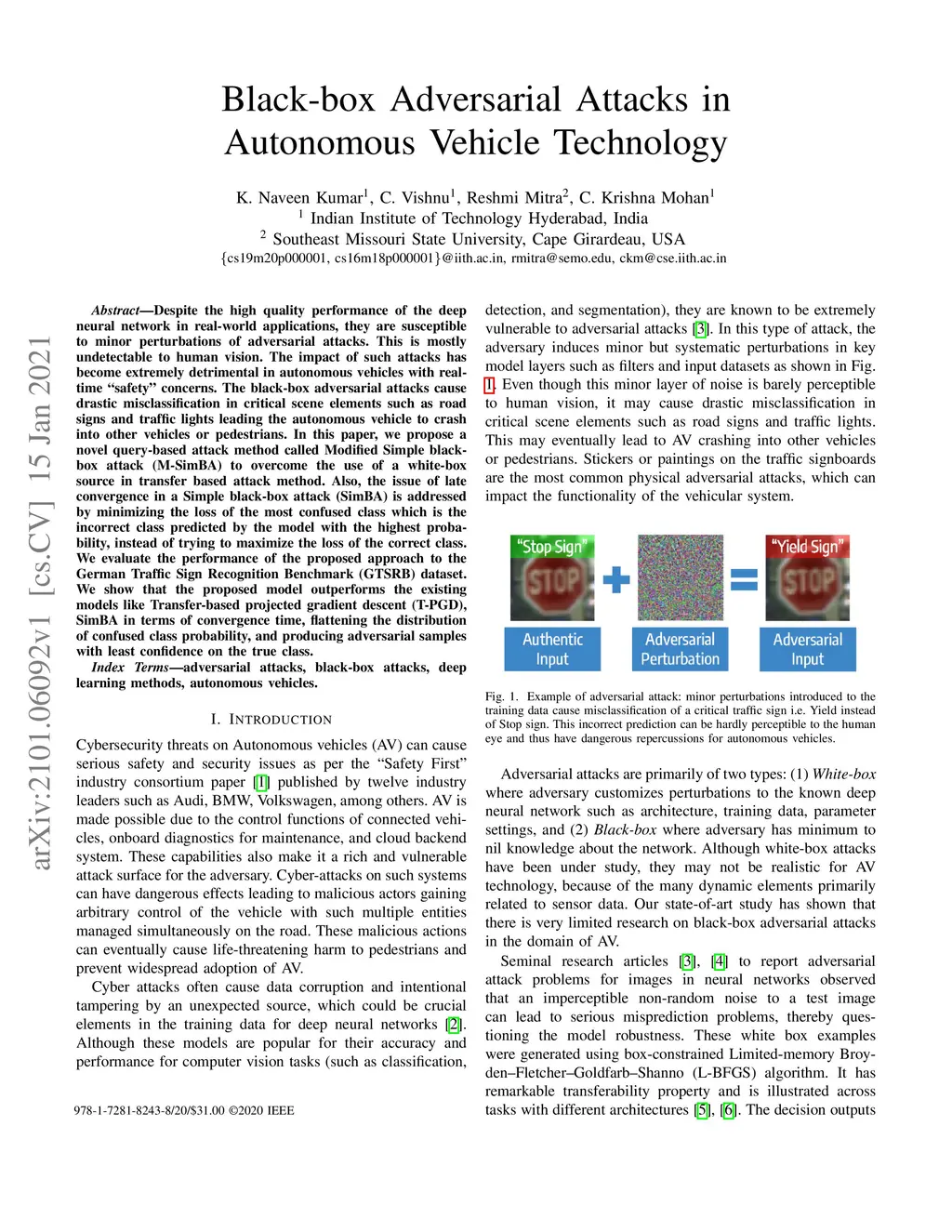 Black-box Adversarial Attacks in Autonomous Vehicle Technology