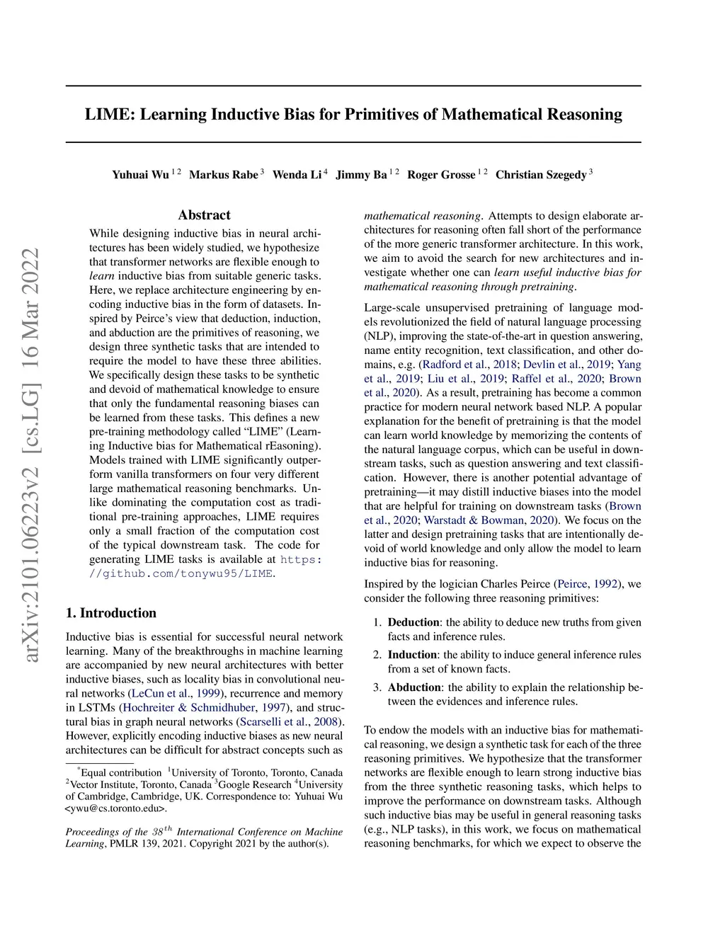 LIME: Learning Inductive Bias for Primitives of Mathematical Reasoning