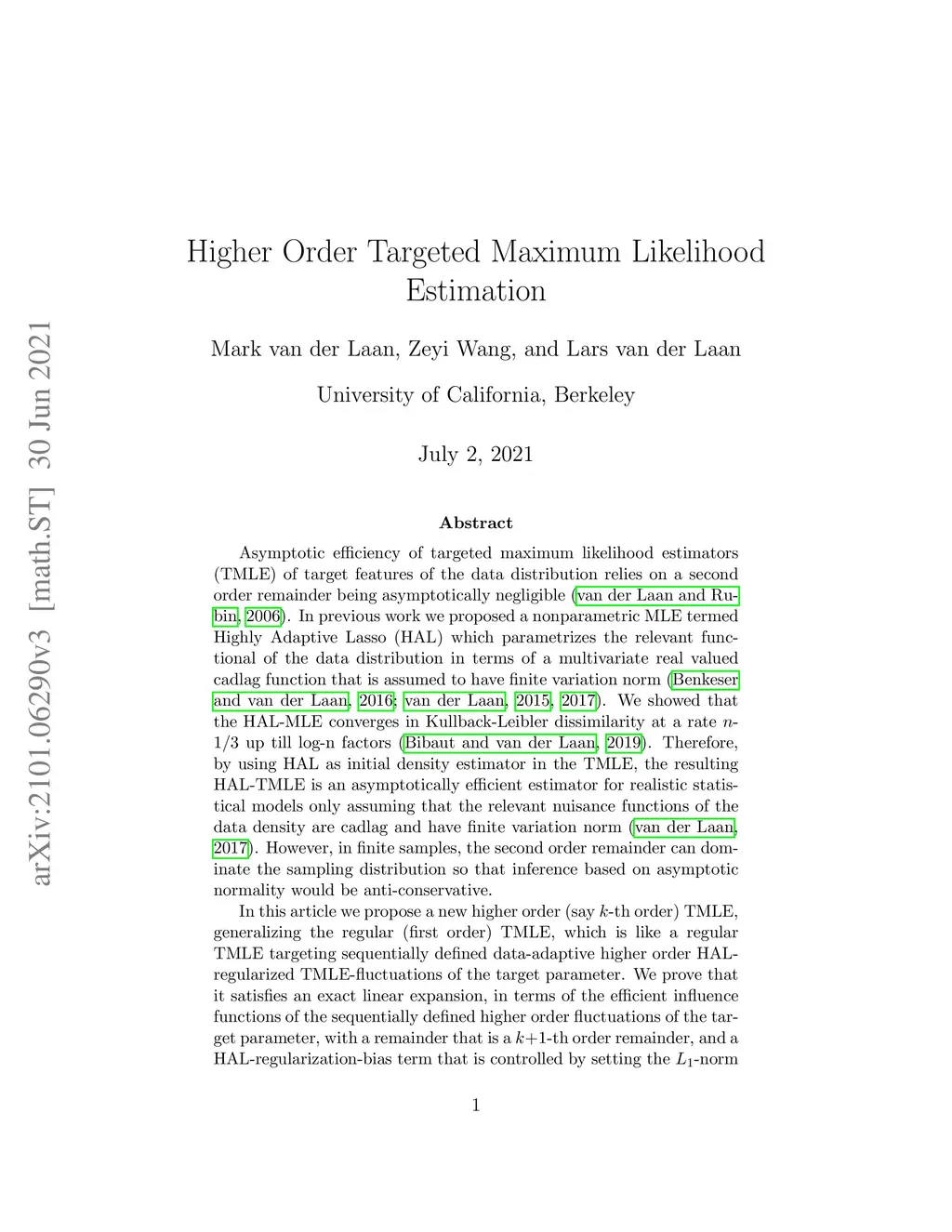 Asymptotic efficiency of targeted maximum likelihood estimators (TMLE) of target features of the data distribution relies on a a second order remainder being asymptotically negligible. In previous work we proposed a nonparametric MLE termed Highly Adaptive Lasso (HAL) which parametrizes the relevant functional of the data distribution in terms of a multivariate real valued cadlag function that is assumed to have finite variation norm. We showed that the HAL-MLE converges in Kullback-Leibler dissimilarity at a rate n-1/3 up till logn factors. Therefore, by using HAL as initial density estimator in the TMLE, the resulting HAL-TMLE is an asymptotically efficient estimator only assuming that the relevant nuisance functions of the data density are cadlag and have finite variation norm. However, in finite samples, the second order remainder can dominate the sampling distribution so that inference based on asymptotic normality would be anti-conservative. In this article we propose a new higher order TMLE, generalizing the regular first order TMLE. We prove that it satisfies an exact linear expansion, in terms of efficient influence functions of sequentially defined higher order fluctuations of the target parameter, with a remainder that is a k+1th order remainder. As a consequence, this k-th order TMLE allows statistical inference only relying on the k+1th order remainder being negligible. We also provide a rationale for the higher order TMLE that it will be superior to the first order TMLE by (iteratively) locally minimizing the exact finite sample remainder of the first order TMLE. The second order TMLE is demonstrated for nonparametric estimation of the integrated squared density and for the treatment specific mean outcome. We also provide an initial simulation study for the second order TMLE of the treatment specific mean confirming the theoretical analysis.