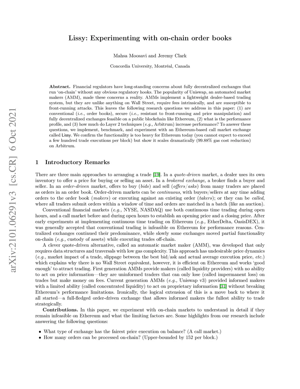 When consumers trade financial products, they typically use well-identified service providers that operate under government regulation. In theory, decentralized platforms like Ethereum can offer trading services 'on-chain' without an obvious entry point for regulators. Fortunately for regulators, most trading volume in blockchain-based assets is still on centralized service providers for performance reasons. However this leaves the following research questions we address in this paper: (i) is secure trading (i.e., resistant to front-running and price manipulation) even feasible as a fully 'on-chain' service on a public blockchain, (ii) what is its performance benchmark, and (iii) what is the performance impact of novel techniques (e.g., 'rollups') in closing the performance gap? To answer these questions, we 'learn by doing' and custom design an Ethereum-based call market (or batch auction) exchange, Lissy, with favourable security properties.We conducta variety of optimizations and experiments to demonstrate that this technology cannot expect to exceed a few hundred trade executions per block (i.e., 13s window of time). However this can be scaled dramatically with off-chain execution that is not consumer-facing. We also illustrate, with numerous examples throughout the paper, how blockchain deployment is full of nuances that make it quite different from developing in better understood domains (e.g., cloud-based web applications).