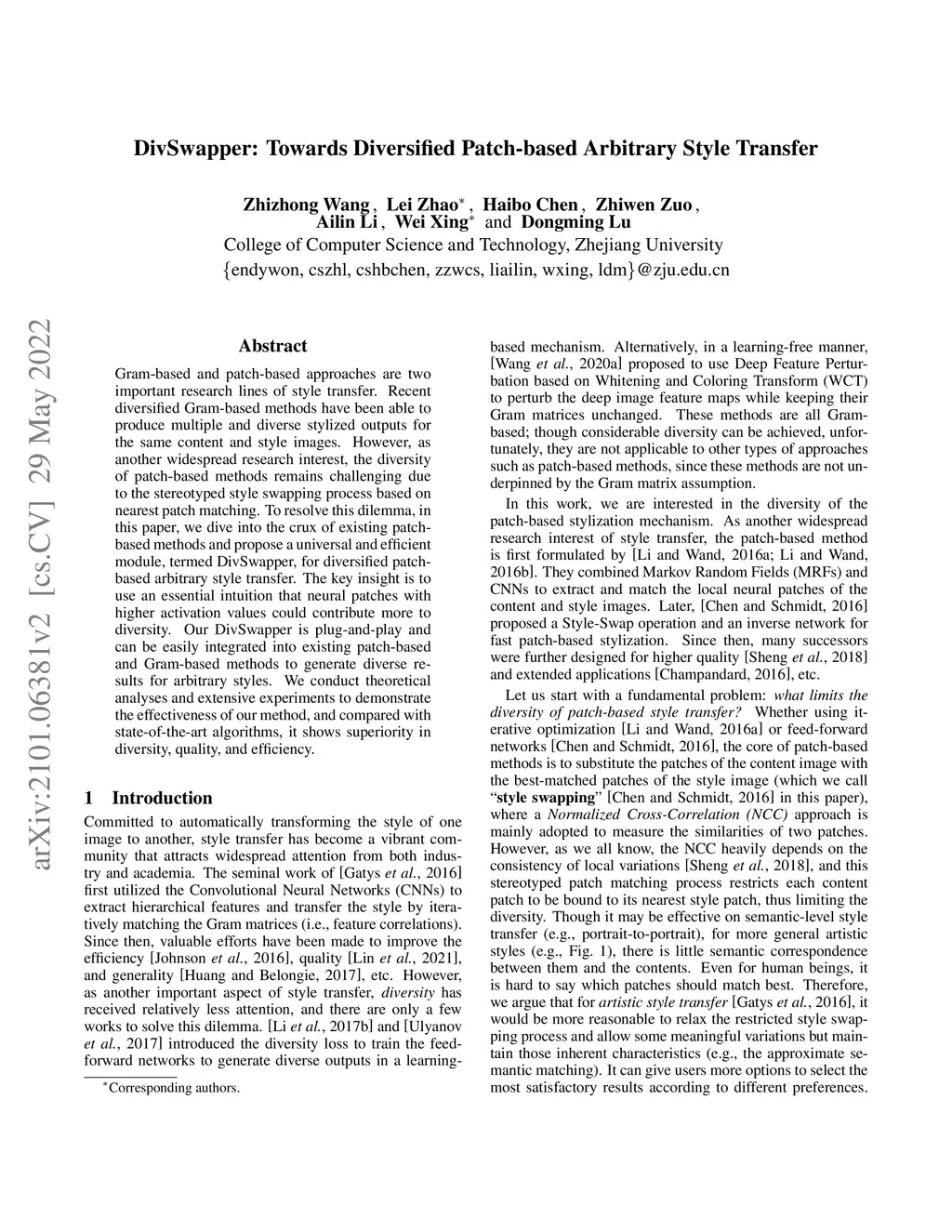 DivSwapper: Towards Diversified Patch-based Arbitrary Style Transfer