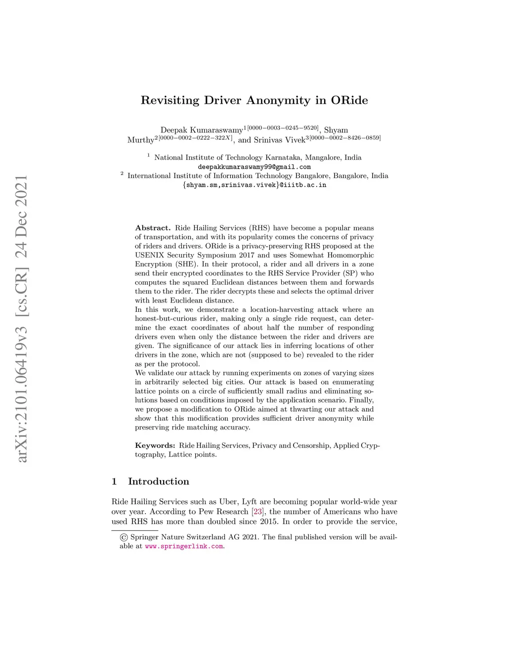 Revisiting Driver Anonymity in ORide