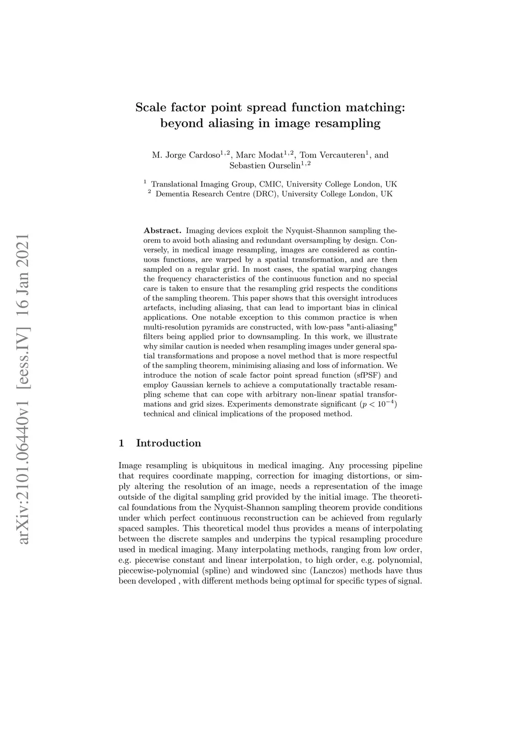 Imaging devices exploit the Nyquist-Shannon sampling theorem to avoid both aliasing and redundant oversampling by design. Conversely, in medical image resampling, images are considered as continuous functions, are warped by a spatial transformation, and are then sampled on a regular grid. In most cases, the spatial warping changes the frequency characteristics of the continuous function and no special care is taken to ensure that the resampling grid respects the conditions of the sampling theorem. This paper shows that this oversight introduces artefacts, including aliasing, that can lead to important bias in clinical applications. One notable exception to this common practice is when multi-resolution pyramids are constructed, with low-pass "anti-aliasing" filters being applied prior to downsampling. In this work, we illustrate why similar caution is needed when resampling images under general spatial transformations and propose a novel method that is more respectful of the sampling theorem, minimising aliasing and loss of information. We introduce the notion of scale factor point spread function (sfPSF) and employ Gaussian kernels to achieve a computationally tractable resampling scheme that can cope with arbitrary non-linear spatial transformations and grid sizes. Experiments demonstrate significant (p<1e-4) technical and clinical implications of the proposed method.