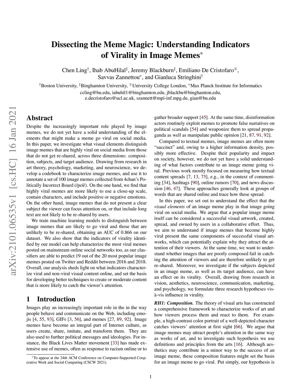 Dissecting the Meme Magic: Understanding Indicators of Virality in Image