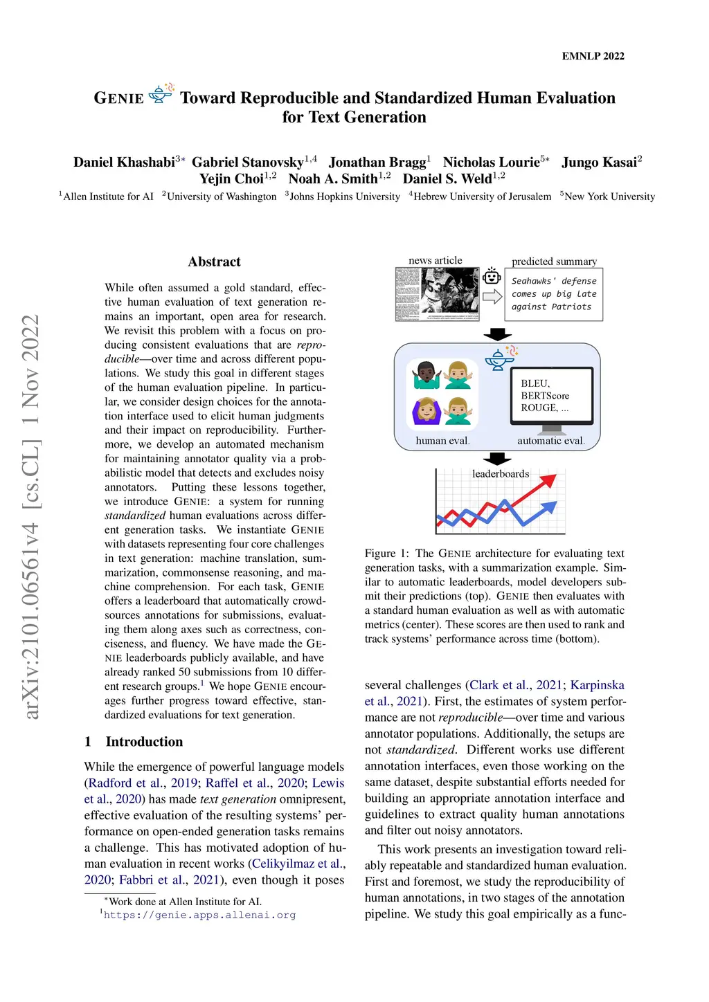 GENIE: Toward Reproducible and Standardized Human Evaluation for Text