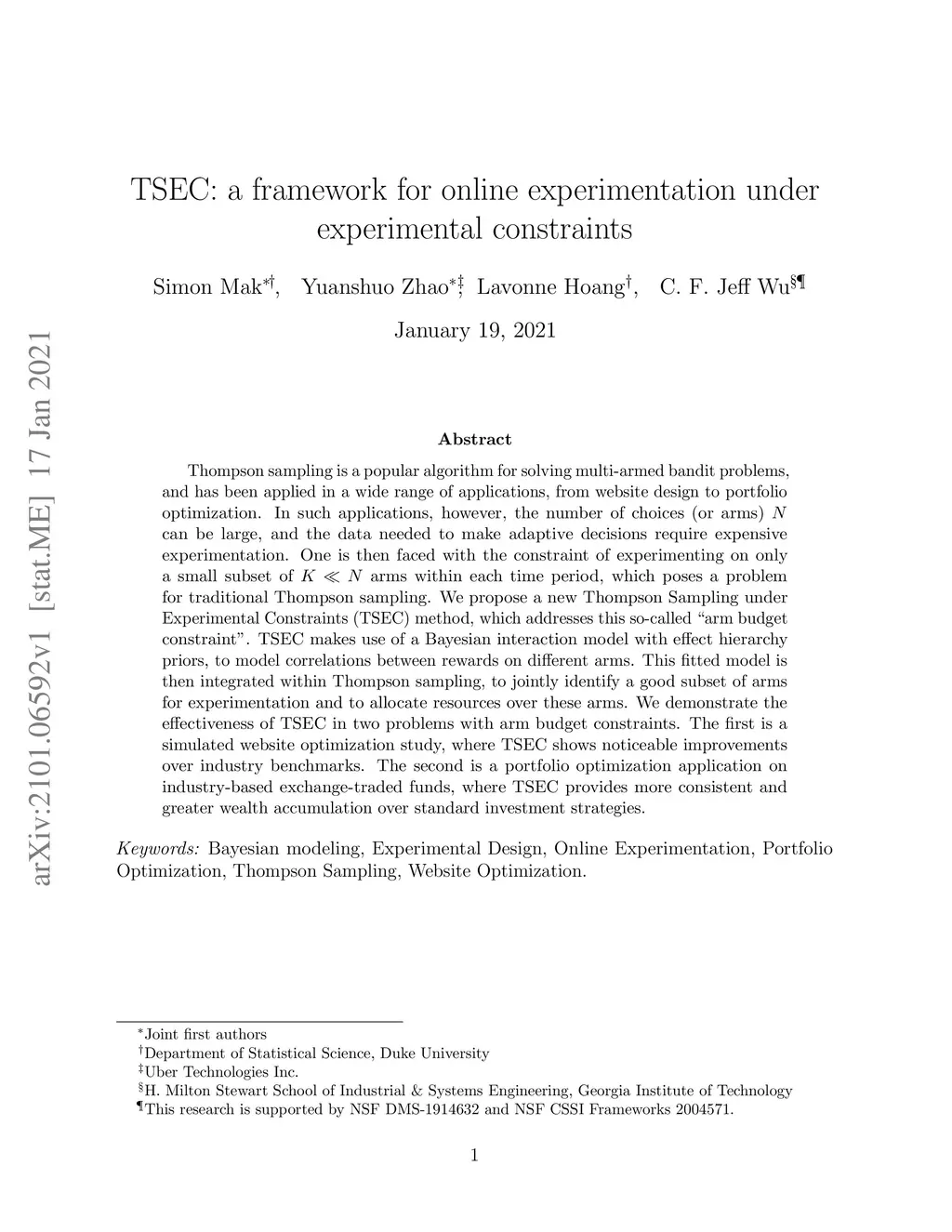 TSEC: a framework for online experimentation under experimental