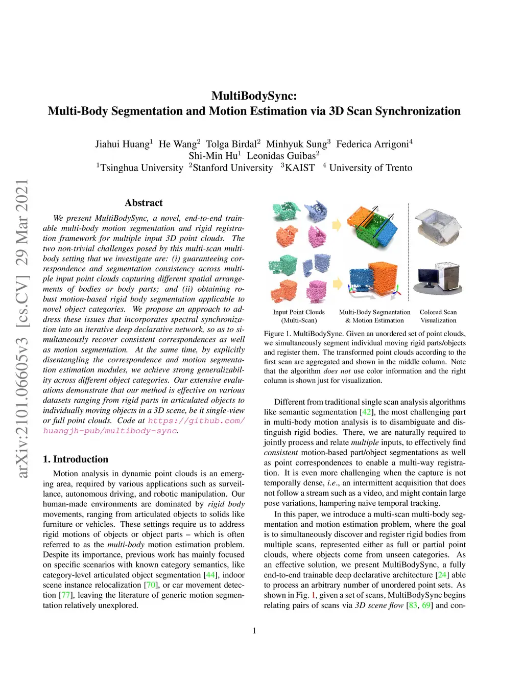 MultiBodySync: Multi-Body Segmentation and Motion Estimation via 3D Scan