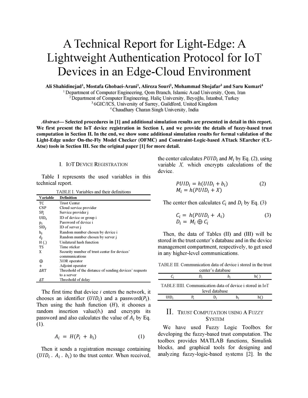 Selected procedures in [1] and additional simulation results are presented in detail in this report. We first present the IoT device registration in Section I, and we provide the details of fuzzy-based trust computation in Section II. In the end, we show some additional simulation results for formal validation of the Light-Edge under On-the-Fly Model Checker (OFMC) and Constraint-Logic-based ATtack SEarcher (CLAtse) tools in Section III. See the original paper [1] for more detail.