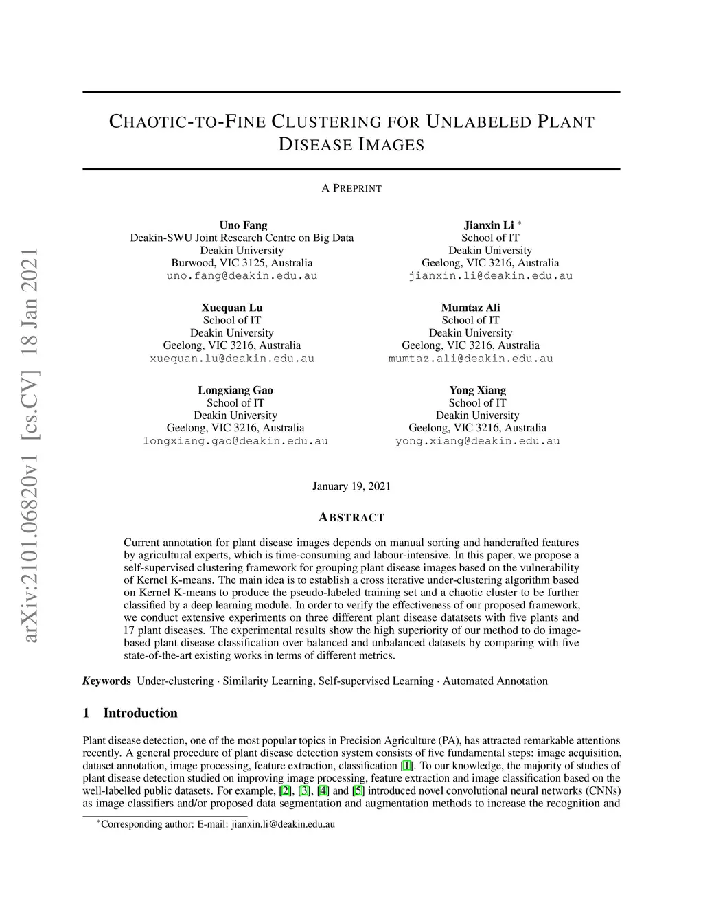 Chaotic-to-Fine Clustering for Unlabeled Plant Disease Images