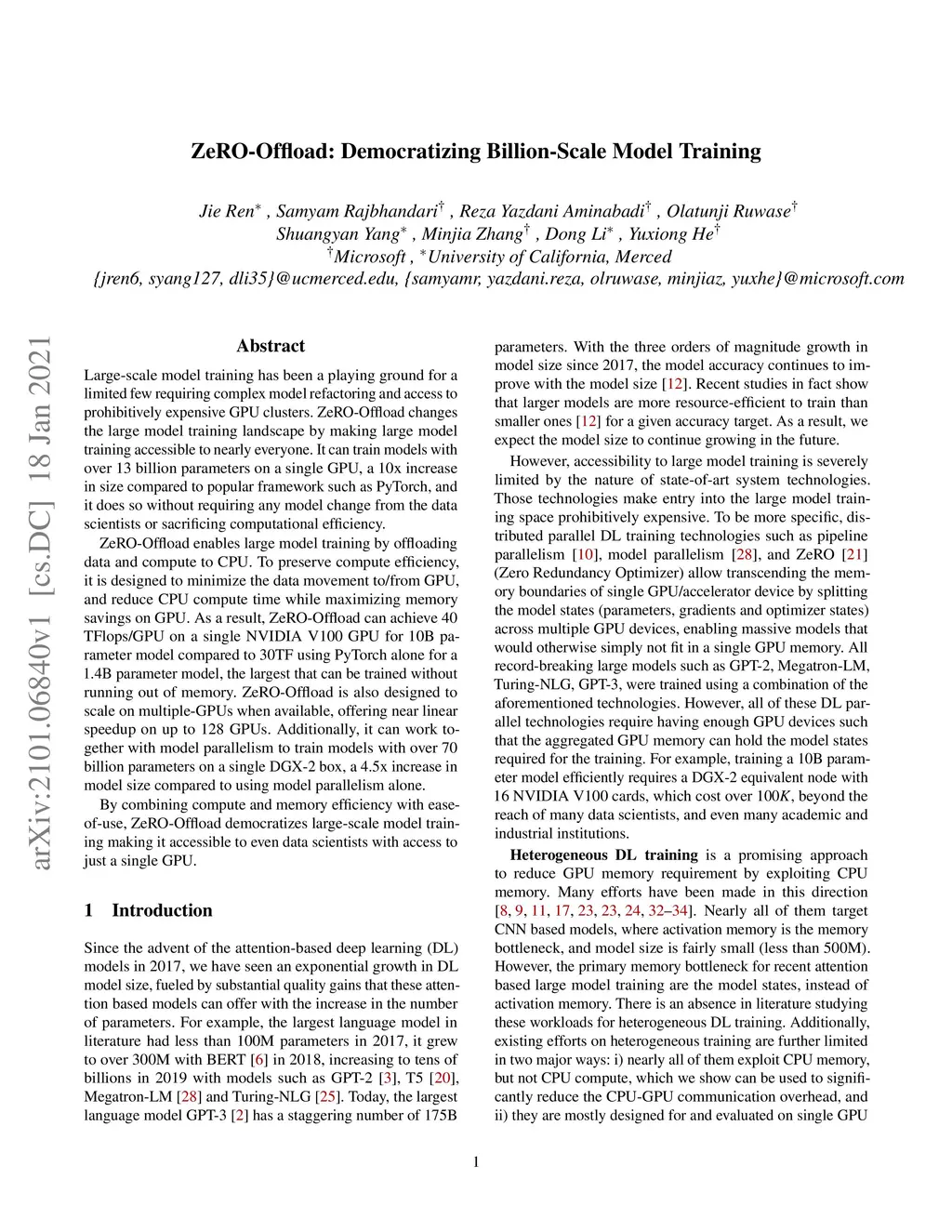 ZeRO-Offload: Democratizing Billion-Scale Model Training
