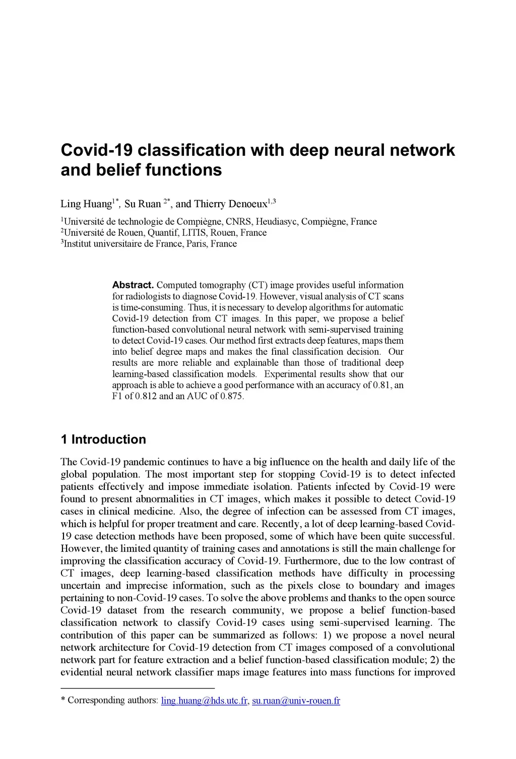 Covid-19 classification with deep neural network and belief functions