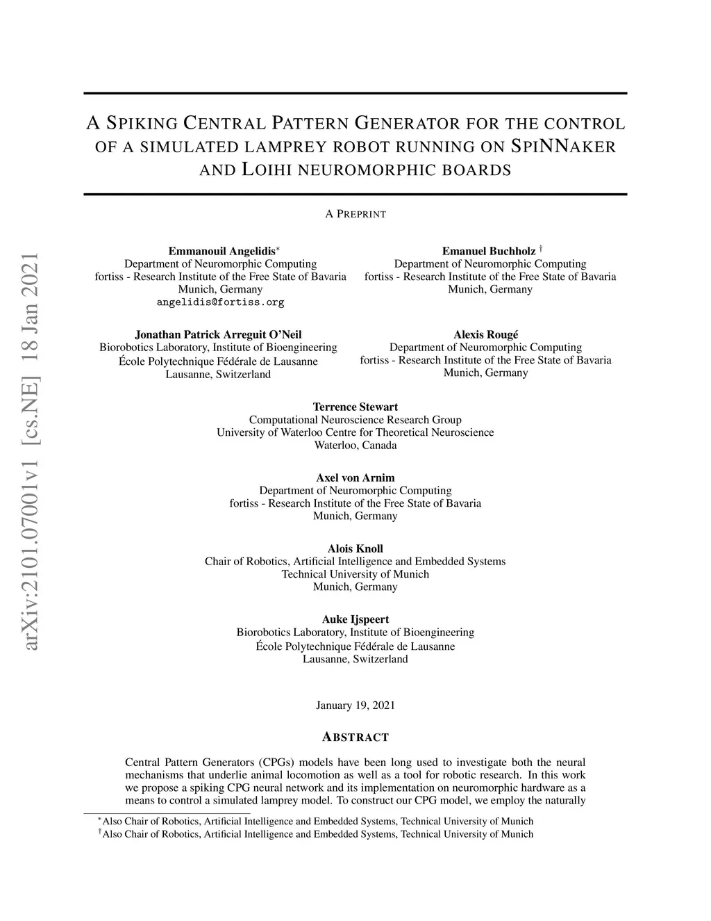 lamprey robot running on SpiNNaker and Loihi neuromorphic boards