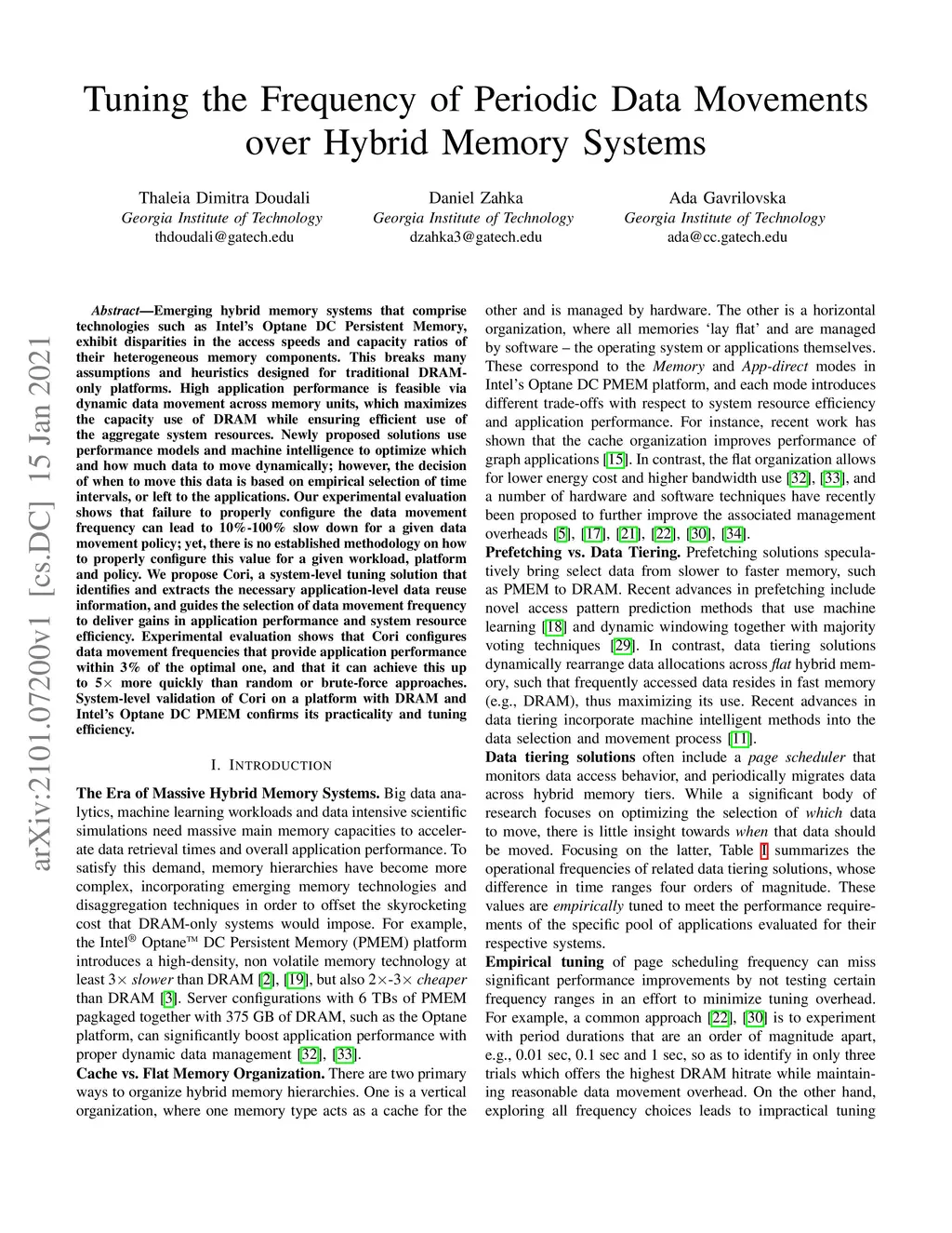 Emerging hybrid memory systems that comprise technologies such as Intel's Optane DC Persistent Memory, exhibit disparities in the access speeds and capacity ratios of their heterogeneous memory components. This breaks many assumptions and heuristics designed for traditional DRAM-only platforms. High application performance is feasible via dynamic data movement across memory units, which maximizes the capacity use of DRAM while ensuring efficient use of the aggregate system resources. Newly proposed solutions use performance models and machine intelligence to optimize which and how much data to move dynamically; however, the decision of when to move this data is based on empirical selection of time intervals, or left to the applications. Our experimental evaluation shows that failure to properly configure the data movement frequency can lead to 10%-100% slowdown for a given data movement policy; yet, there is no established methodology on how to properly configure this value for a given workload, platform and policy. We propose Cori, a system-level tuning solution that identifies and extracts the necessary application-level data reuse information, and guides the selection of data movement frequency to deliver gains in application performance and system resource efficiency. Experimental evaluation shows that Cori configures data movement frequencies that provide application performance within 3% of the optimal one, and that it can achieve this up to 5x more quickly than random or brute-force approaches. System-level validation of Cori on a platform with DRAM and Intel's Optane DC PMEM confirms its practicality and tuning efficiency.