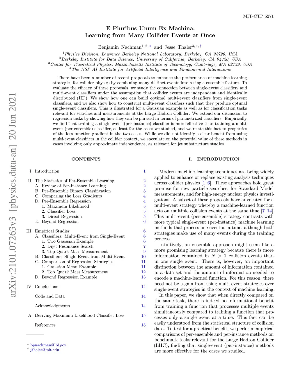 There have been a number of recent proposals to enhance the performance of machine learning strategies for collider physics by combining many distinct events into a single ensemble feature. To evaluate the efficacy of these proposals, we study the connection between single-event classifiers and multi-event classifiers under the assumption that collider events are independent and identically distributed (IID). We show how one can build optimal multi-event classifiers from single-event classifiers, and we also show how to construct multi-event classifiers such that they produce optimal single-event classifiers. This is illustrated for a Gaussian example as well as for classification tasks relevant for searches and measurements at the Large Hadron Collider. We extend our discussion to regression tasks by showing how they can be phrased in terms of parametrized classifiers. Empirically, we find that training a single-event (per-instance) classifier is more effective than training a multi-event (per-ensemble) classifier, as least for the cases we studied, and we relate this fact to properties of the loss function gradient in the two cases. While we did not identify a clear benefit from using multi-event classifiers in the collider context, we speculate on the potential value of these methods in cases involving only approximate independence, as relevant for jet substructure studies.