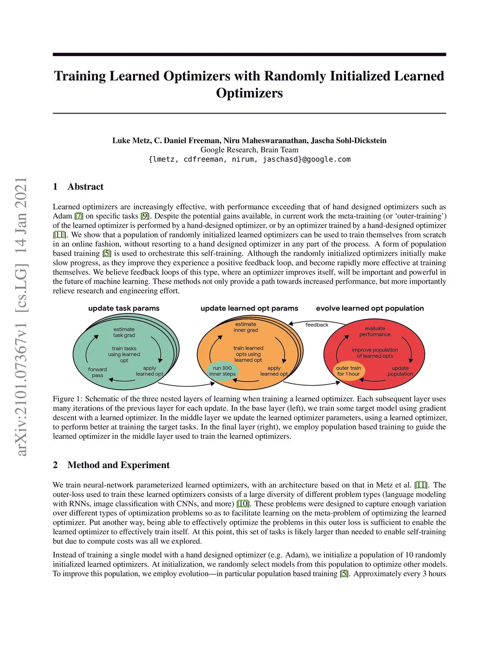 Training Learned Optimizers with Randomly Initialized Learned Optimizers