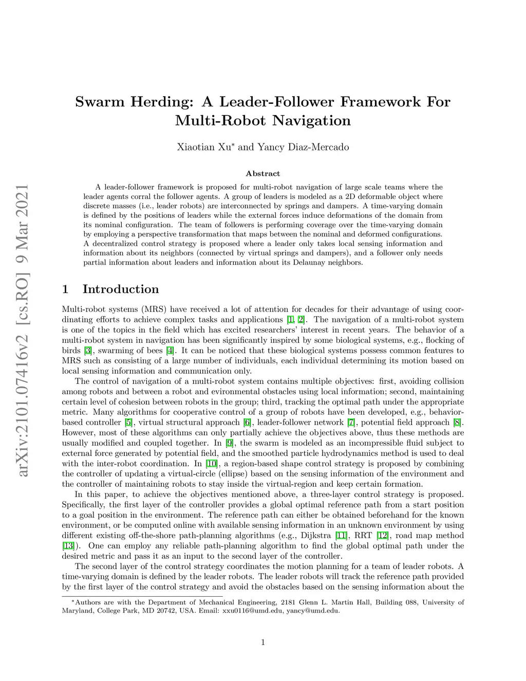 Swarm Herding: A Leader-Follower Framework For Multi-Robot Navigation