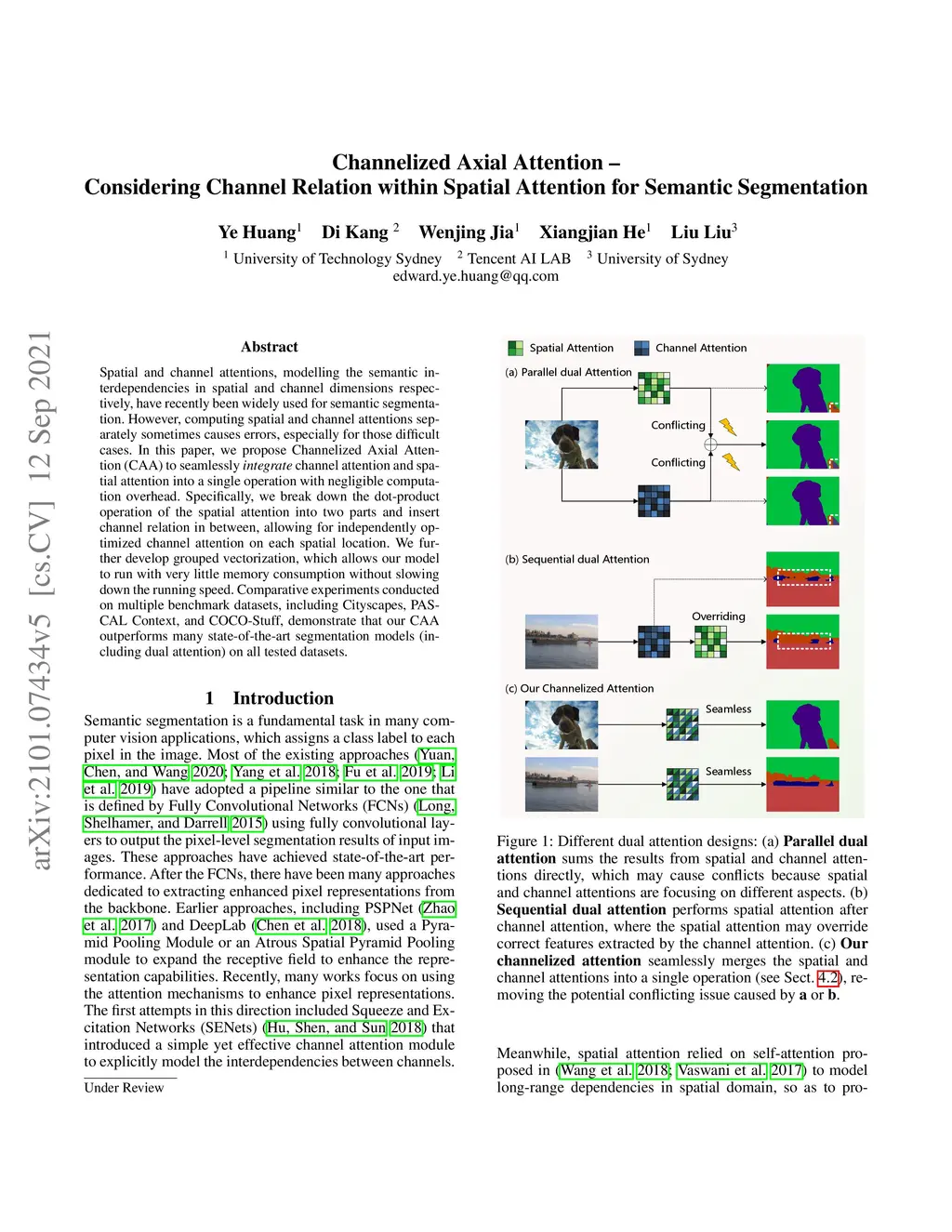 Channelized Axial Attention for Semantic Segmentation -- Considering