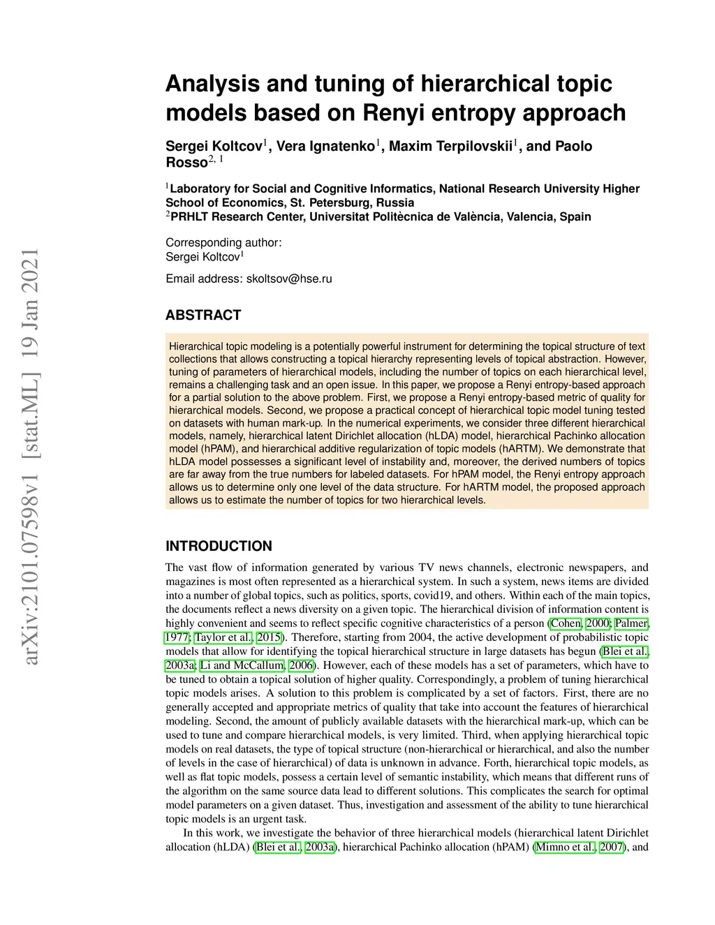 Analysis and tuning of hierarchical topic models based on Renyi entropy